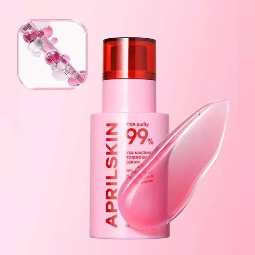 The AprilSkin TXA Niacinamide Toning Shot 99% Serum delivers a powerful boost of radiance to dull or uneven skin. Formulated with high concentrations of Tranexamic Acid (TXA) and Niacinamide, it targets dark spots, pigmentation, and redness while improving overall skin clarity. The lightweight, fast-absorbing texture glides smoothly onto the skin, providing deep hydration without any stickiness. With continued use, your complexion appears brighter, smoother, and more balanced. Perfect for daily use, this serum helps reveal a naturally luminous glow while supporting a clear, even-toned complexion.