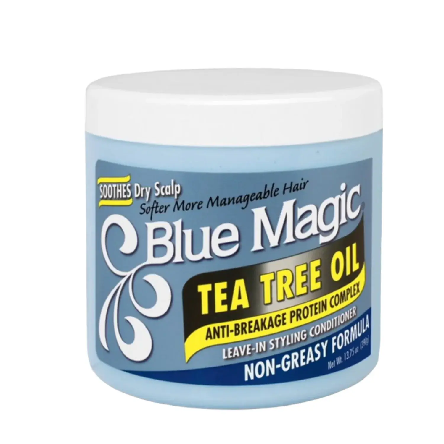 Revitalize your scalp with the cooling care of Blue Magic Tea Tree Oil. Infused with pure tea tree oil and nourishing natural oils, this lightweight conditioner helps calm irritation, reduce dryness, and relieve flaking while supporting a clean, healthy scalp environment. It moisturizes and strengthens hair, helping to prevent breakage and encourage growth. Non-greasy and easy to apply, it leaves your hair soft, manageable, and naturally refreshed with a healthy shine.