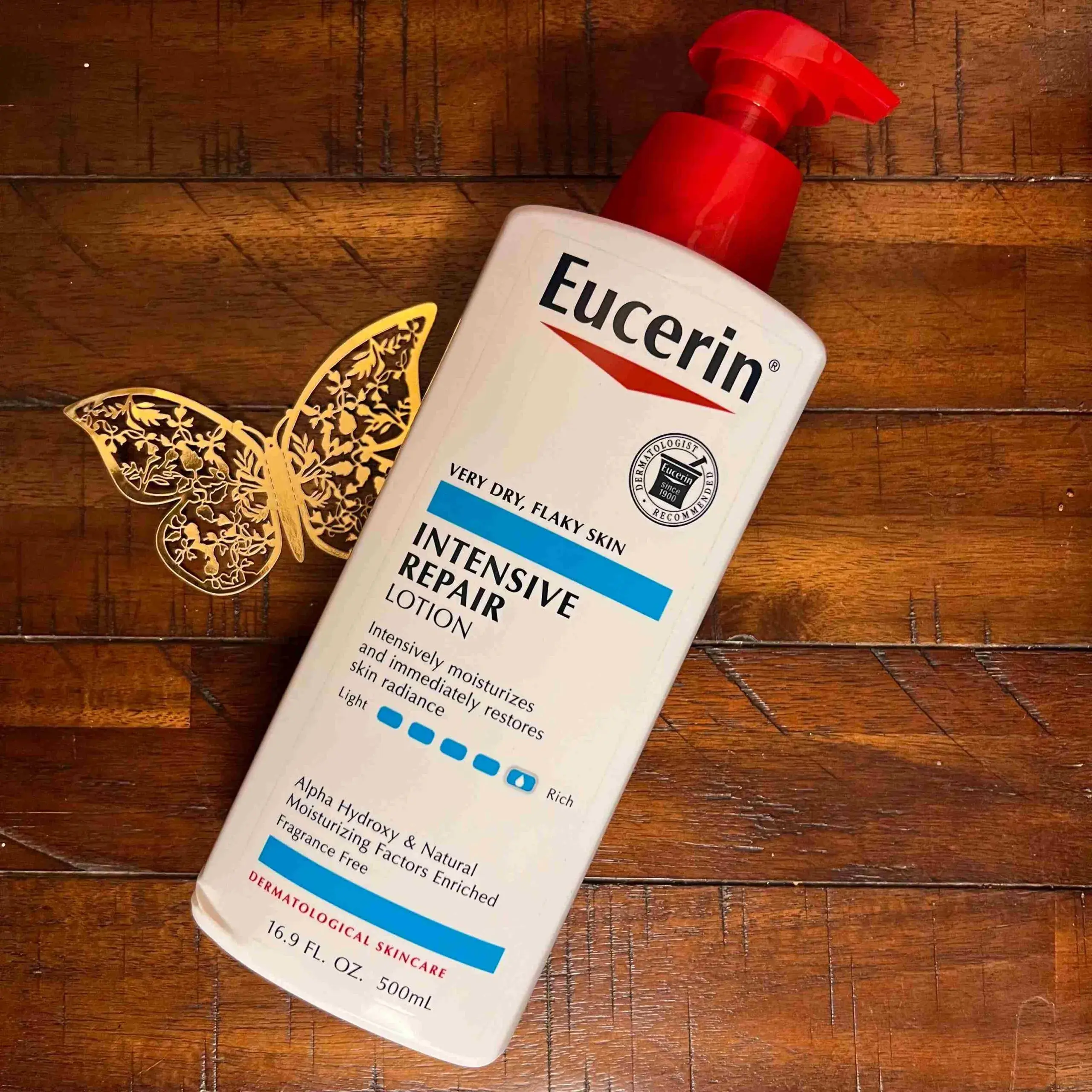 Discover deeply nourished, radiant skin with Janah Cosmetics' Eucerin Intensive Repair Lotion:
