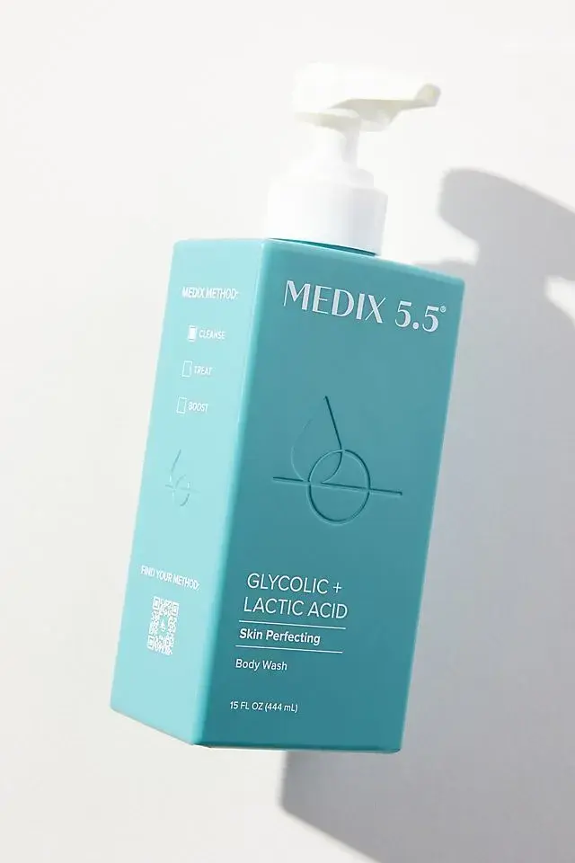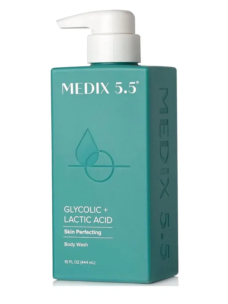 Experience gentle, effective exfoliation every time you shower with MEDIX 5.5 Glycolic Lactic Acid Skin Perfecting Body Wash (444ml). This dermatologist-tested formula is designed to support your skin’s natural renewal process by combining the exfoliating power of glycolic and lactic acids with a pH-balanced base. It helps smooth rough patches, minimize dullness, and deeply cleanse without disrupting your skin's protective barrier.